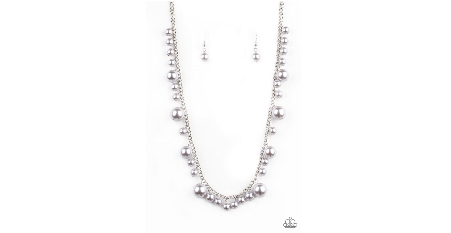 Varying in size, bubbly silver pearls trickle along a shimmery silver chain for a refined look. Features an adjustable clasp closure. Sold as one individual necklace. Includes one pair of matching earrings.